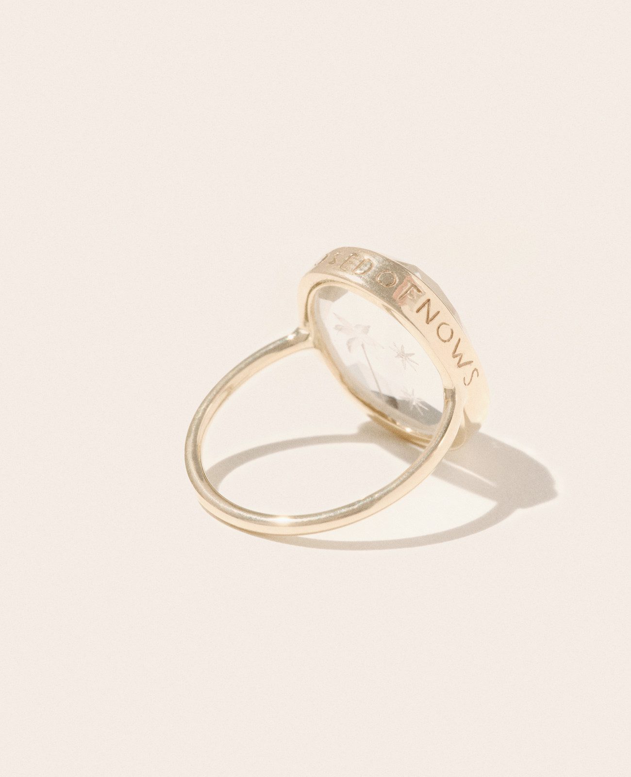 Alba, quand l’artisanat rencontre la poésie. Cette saison, Pascale redonne vie au Cristal qu’elle affectionne tant. Orné d’un palmier gravé à la main, il incarne l’Instant présent grâce à la citation d’Emily Dickinson « Forever is composed of nows » (« L’éternité est composée d’instants présents ») qui nous rappelle l’importance de chaque moment.